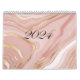 Calwndar 2024 pink marble pattern with gold calendar