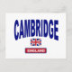 Cambridge England in text with British Flag (sometimes called the Union Jack)