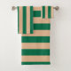 Camel Beige & Classic Green Stripe Bath Towel Set