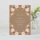 This design features an earthy camel backdrop adorned with a romantic arrangement of watercolor roses in creamy white and warm rust tones. Delicate sprays of autumnal foliage and small white blossoms create a natural, bohemian aesthetic. Ideal for a rustic fall event, the palette evokes warmth and sophisticated woodland charm.