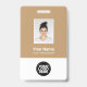 Easily personalise this Camel Custom Employee Name Badge with Photo, Scan Bar Code and business logo. A simple business design in trendy Camel and white standard colours fully customisable in front and back sizes, sans-serif basic and modern fonts and a professional and clear look. Avaiable with lanyard, metal clip or with retractable. No minimum order.