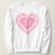 A pink lace heart Camelia Baker graphic sweatshirt.