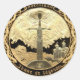 Gold wine bottle label of King Arthur's mediaeval Camelot Castle, and the wizard Merlin behind the knights Excalibur Sword. This is a beautiful Camelot Label that can be used for labelling your wines. Beautiful used for wine labels or for product labels. The Dragon is around the perimeter. This is a copy of a coin from France.