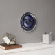 A digital graphic of a camera lens straight on. A great clock for the novice as well as the professional photographer. Perfect for the office or home studio.