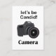 Camera Professional Candid Photographer Business Card originally designed by Nisha Prabhu. Fully Customizable. Personalize with your details. Make a striking impression with our Camera Professional Candid Photographer Business Card. Designed with sleek imagery of professional camera, this card reflects expertise, creativity, and passion for capturing genuine moments. Perfect for photographers looking to showcase their skills and stand out in the industry. Elevate your branding and leave a lasting impression with this stylish and professional business card tailored for candid photography professionals.