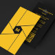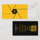 Photographer Camera Lens Shutter Elegant Yellow Black Monogram business card with QR code
