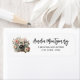 Address labels with a vintage styled camera decorated with flowers. Pastel colors of pink, cream and green.