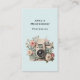 Business cards with a vintage styled camera decorated with flowers. Pastel colors of pink, cream and green.