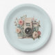 Camera with Flowers Retro Pastel Image Paper Plate