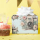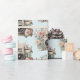 Wrapping paper with a vintage styled camera decorated with flowers. Pastel colors of pink, cream and green.