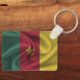 Keychain with the flag of Cameron in wavy fabric style design. This design features the Cameroonian flag colours and design with a beautiful waving material textured effect. This flag design is a great way to show you are proud to be from Cameron.