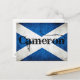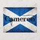 Cameron family / clan name in grunge style font on Scotland's St. Andrews Cross flag