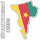 Cameroon Flag Map Patriotic Sticker in the outline of the Cameroon map. The map is infused with the pattern and the colours from the Cameroon national flag. Small stickers with the country name are also included. Text is fully customisable using "Customise it!" feature. Cameroon map sticker is the perfect sticky gift that can be placed anywhere your heart desire. © 2021 CoutriesOfTheWorld