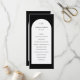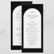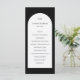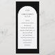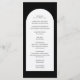 Modern wedding program featuring your monogram along with your order of ceremony and wedding party inside of an off white coloured arch over a black background. This simple yet elegant design in classic black and white is great for any style of wedding.