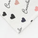 A romantic pattern design of black and pink hearts with custom name, aligned side by side and diagonally orientated.