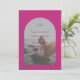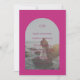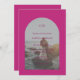 Modern wedding invitation featuring your monogram along with your details over your favourite photo inside of an arch over a vibrant magenta background. The template includes a sheer overlay to allow the text to show up over your picture and may be removed in the design editing tool. This simple yet elegant design with bold and bright colours is great for a summer wedding.
