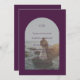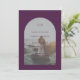 Modern wedding invitation featuring your monogram along with your details over your favourite photo inside of an arch over an aubergine purple background. The template includes a sheer overlay to allow the text to show up over your picture and may be removed in the design editing tool. This simple yet elegant design with rich colours can be great for a summer or fall wedding.