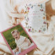 This first birthday invitation features watercolor wildflowers and cute monarch butterflies with an optional photo backside. This invite is perfect for your "little wildflower" themed event. Pair with anything in the CAMILLA Collection for a cohesive look.