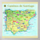 Poster of the map showing the many routes of the Camino de Santiago
