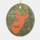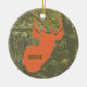 An ornament featuring an illustration of an orange deer head over a camouflage background. Personalise with your name.