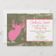A birthday party invitation featuring an illustration of a pink deer head at left over a camouflage background. Personalise the text at right with details of your occasion.