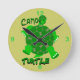 The clock did not take as long to arrive as I thought it might and was extremely well packaged. I didn't do the measurements so I didn't realize it is a little smaller than the average clock but that does not matter (just make sure you check if that's important to you).It is really nifty! It seems very solid and well made not flimsy at all. It has been going well and has kept good time in its few weeks on my wall. Nice product. Gets noticed too! Nicer in real life than the picture but true to the picture