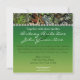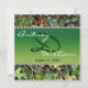 Camo (hunting camouflage) wedding invitations are themed with oak leaves, mossy grass and tree bark with a pearl border on front and back for a feminine touch. Text areas feature a hunter green to lighter grade blend for appeal. Customise the colours, wording or fonts to your like or use the pre-selected choices, if you prefer.