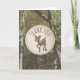 A baby shower thank you card featuring an illustration of a baby deer over a camouflage background. Matching baby shower invitations at coordinating items are available at Jill's Paperie.