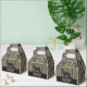 These favour boxes are a perfect way to thank your guests for attending a birthday party or other event. All wording on the favour boxes can be changed. The design features brown and green camouflage with an antlered buck deer. The bottom text has a diamond plate background. These favour boxes are perfect for a hunting themed birthday or retirement party.