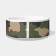 This woodland camouflage dog bowl in khaki, sage green, brown, tan and black will have your dog eating in style. Personalise with his/her name in a tan stencil typography on black. Perfect for dog owners in the military just happen to love camo print. Designed by artist ©Susan Coffey.