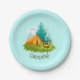 Camp Camping Design Paper Party Plate. Background colour and text can be customised.