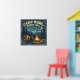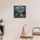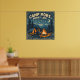This vintage-inspired outdoor poster captures the quiet magic of a night in the woods. A lone camper sits beside a glowing campfire beneath towering pine trees and a star-filled sky, rendered in flat illustrative shapes with a classic, woodblock-style aesthetic. Muted blues and deep night tones balance the warmth of firelit oranges, while a worn ink texture adds authentic, timeworn character. Arched above the scene, the message “Camp More. Worry Less.” serves as a gentle reminder to slow down, unplug, and reconnect with nature. Perfect for cabins, campers, studios, or anyone who feels most at home under the stars.
