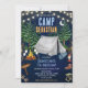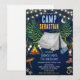 All text is fully customisable — personalise the camp name, birthday child's name, age, date, time, location, and special instructions like "Bring your sleeping bag & PJs." Printed on premium card stock for a polished finish.