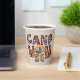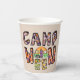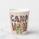 Halloween Camping Paper Cup - Fun Halloween pun Camp Ween in bold purple and orange letters, decorated with skull and jack-o’-lantern patterns. A cute camper sits playfully between the words, adding spooky charm.