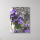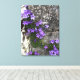 Campanula flowers growing from a crack in a wall. Blue flowers against a wall. Flowers canvas.