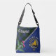 Campbell crossbody bag featuring your clan badge, tartan and motto! Also includes Scottish thistle peeking from the corner. Carry all your "stuff" in the bag, it's big enough, and your hands are free to use your phone! Good for a gym bag, book bag, going to the highland games bag! Show off your Scottish pride!