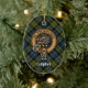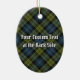 Campbell crest badge surrounded by a strap and buckle over tartan background. Custom text on both sides.