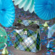 Campbell crest badge surrounded by a strap and buckle over dress tartan. Custom text and monogram.