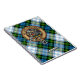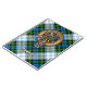 Campbell crest badge surrounded by a strap and buckle over dress tartan background. Custom text.