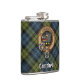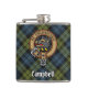Campbell crest badge surrounded by a strap and buckle over tartan. Custom text.