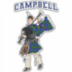 Here is the Campbell piper vinyl sticker ready to put anywhere to show off your Scottish pride! Blowin' the pipes with the Campbell tartan flowing in the wind! Not to forget the basket hilt claymore! Have fun with this one!