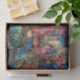 Camper travel trailer hippie colourful blue, red, pink, black Find Your Groove And Vibe inspirational phrase. Vintage Travel Trailer craft decoupage tissue paper. Psychedelic sixties curtains on back window. Trendy, antique, cool, retro, groovy, chic, bohemian photo art. One-of-a-kind unique custom design. Customise text on back of trailer if desired by clicking on personalise this template. You can click on "customise further" to change the size of the image to fit if you decide to change the size. Look for matching products in my store collection. Image copyright Marg Seregelyi Photography.