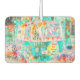 Vintage, camper travel trailer hippie colourful teal, green, yellow, orange pop art quotes. Find Your Groove And Vibe inspirational phrase Travel Trailer car air freshener. Psychedelic sixties curtains on back window. Trendy, antique, cool, retro, groovy, chic, bohemian motivational photo art. One-of-a-kind unique custom design. Customise text on back of camping trailer if desired. Image copyright Marg Seregelyi Photography.