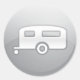 A camper trailer icon on a silver background. This design looks really effective on these Stickers