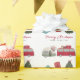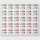 This Christmas holiday wrapping paper features a white background with a red van with a teardrop/truck camper/trailer, Christmas tree and presents. Personalise it for your needs. You can find matching products at my store.