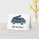 Send some bon voyage greetings to someone headed off on a camping trip or create a personalised birthday card. This folded greeting card is ready to be personalised with your own message on the front and the inside and features an illustration of a camper fan with a popup tent on the roof and is illustrated to look like a moonlit night in the forest with a full moon in a star-filled indigo sky shining down on a grove of evergreen trees.