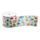 This cute ribbon is versatile and can be used for giving gifts or art and craft projects. The design features camping equipment such as a tent, lantern, compass, campfire, sleeping bag, torch, camper van, toasted marshmallow, binoculus, trees and more on a white background.