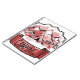 Tent, trees and "Camping" ribbon. Hand drawn badge with red watercolor tint