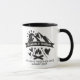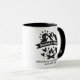 Romantic coffee mug for couples who love camping together, featuring mountains and bonfire with hearts black silhouettes on a white background, with the caption exploring together since in black lettering. Easily customisable by adding your names and text.