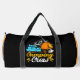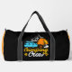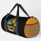 This black duffle bag is perfect for any camping enthusiast, featuring a charming design of a camper van parked next to a tent and a crackling campfire, with mountains in the background. The bold text "Camping Crew" makes it an ideal accessory for your next outdoor adventure or road trip. Edit colour of the bag caps and body in the Design tool to your favored colours.